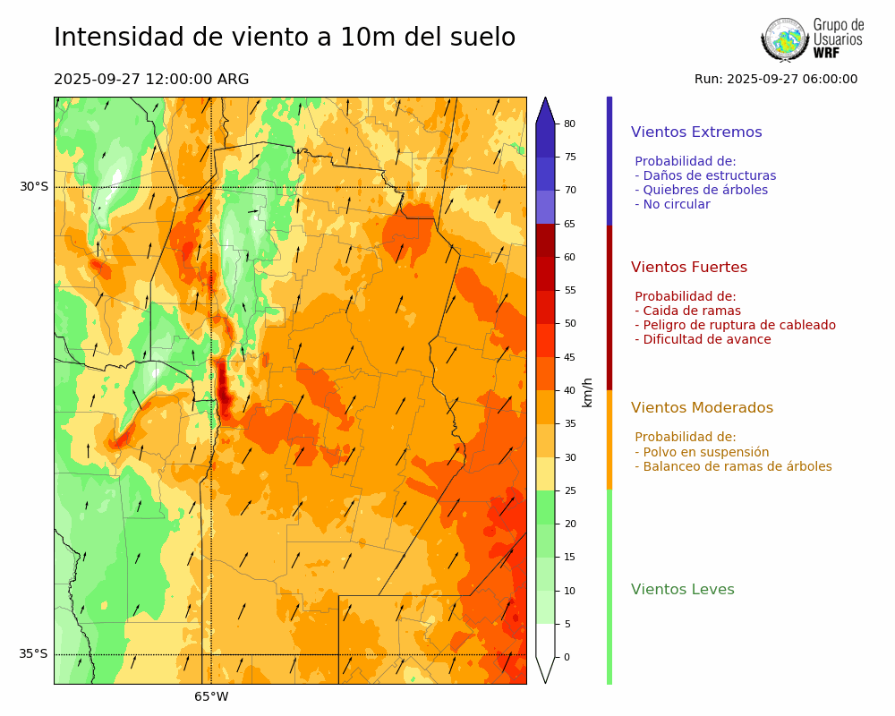 • Intensidad máxima: 6.45 km/h (28/09/2025 05hs.)