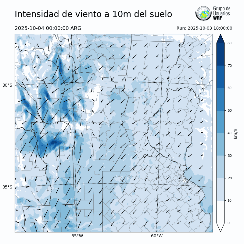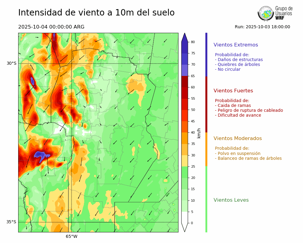 • Intensidad máxima: 25.17 km/h (04/10/2025 18hs.)