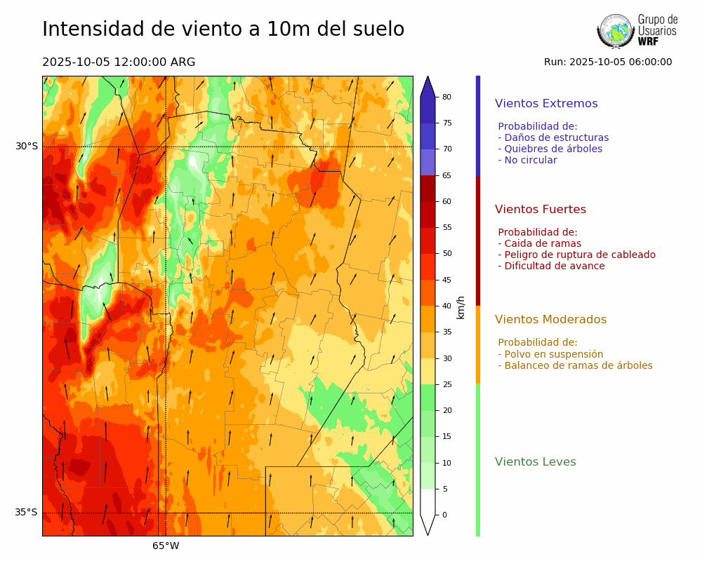 • Intensidad máxima: 30.94 km/h (05/10/2025 19hs.)