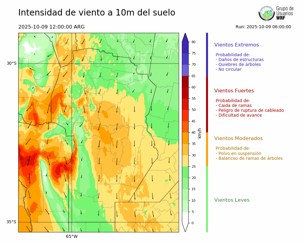• Intensidad máxima: 25.16 km/h (09/10/2025 18hs.)