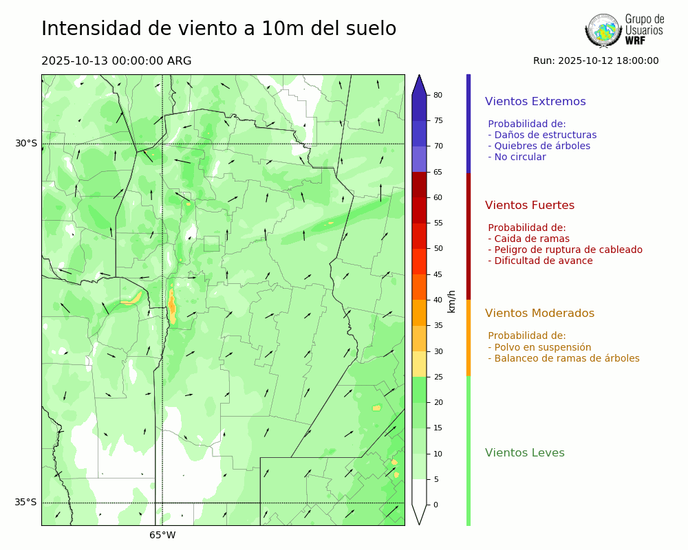• Intensidad máxima: 7.49 km/h (13/10/2025 06hs.)