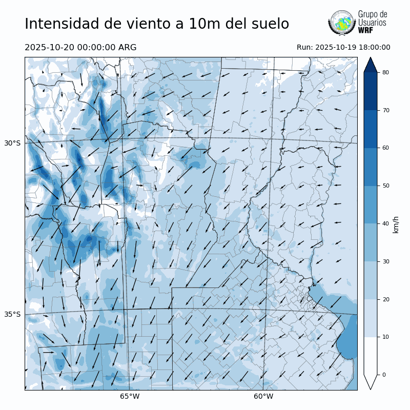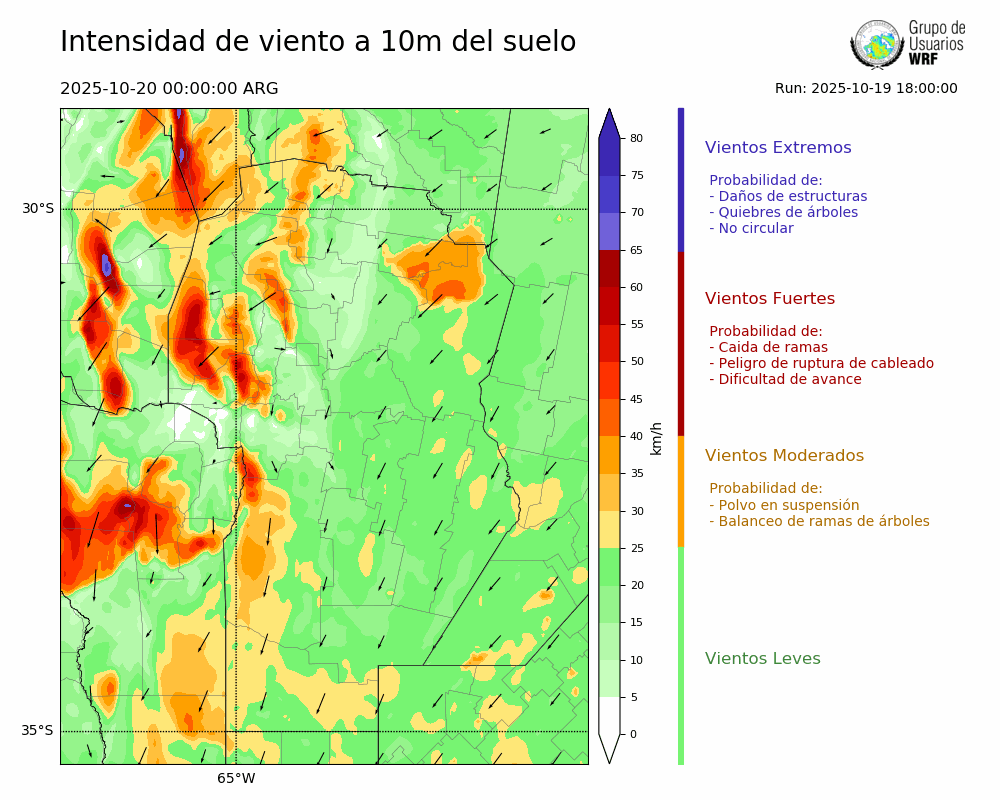 • Intensidad máxima: 22.94 km/h (20/10/2025 05hs.)