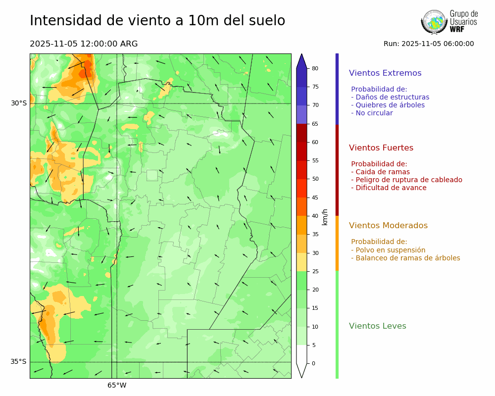 • Intensidad máxima: 12.35 km/h (06/11/2025 18hs.)