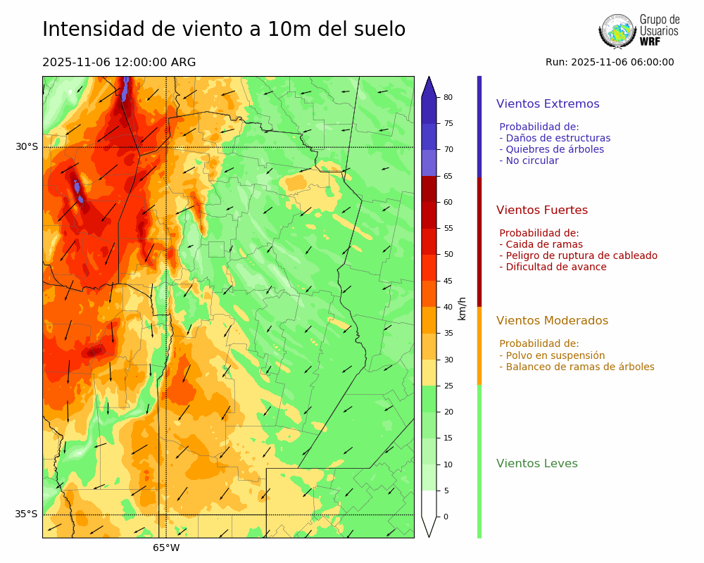 • Intensidad máxima: 17.49 km/h (06/11/2025 17hs.)