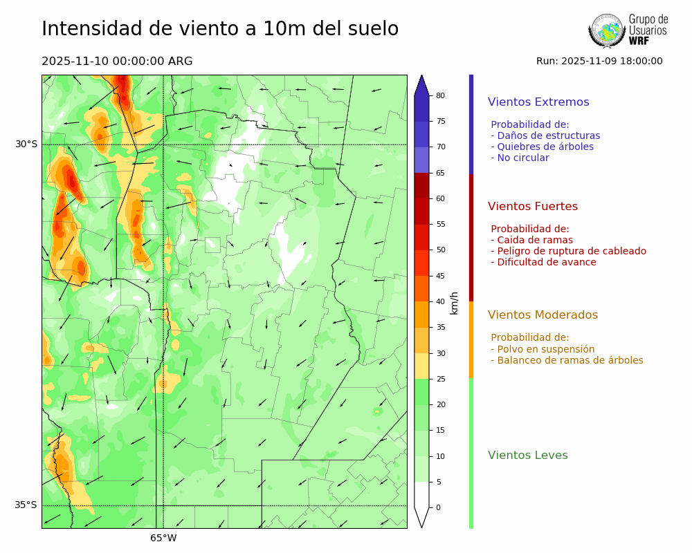 • Intensidad máxima: 18.78 km/h (10/11/2025 11hs.)