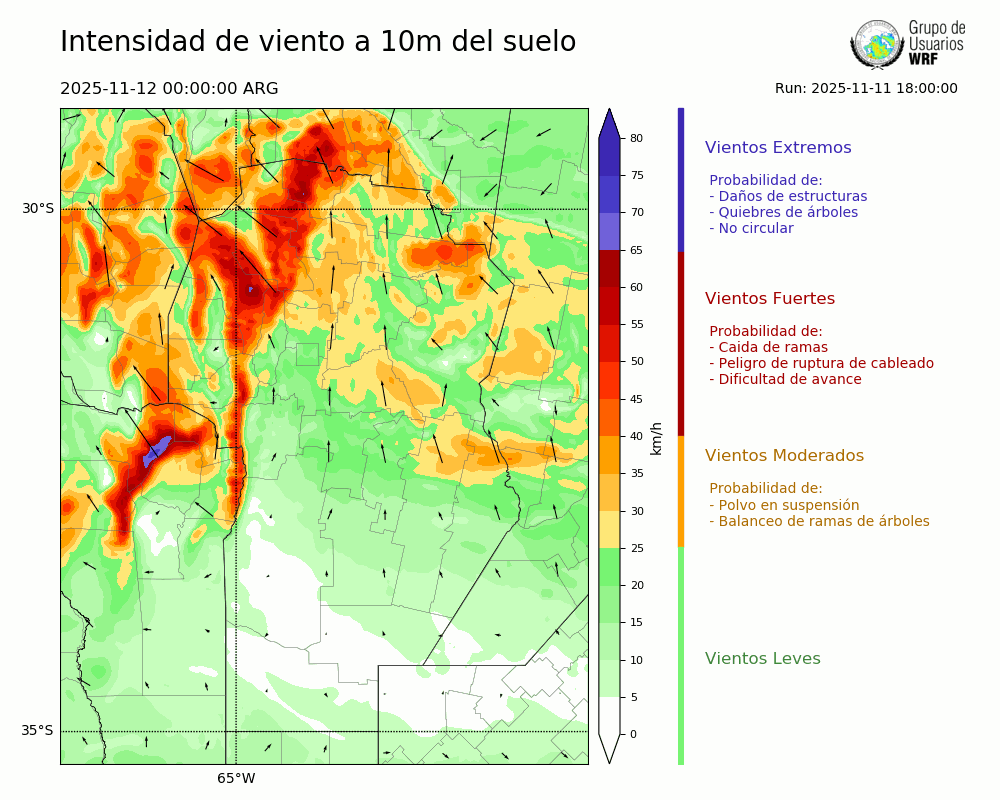 • Intensidad máxima: 20.25 km/h (12/11/2025 00hs.)