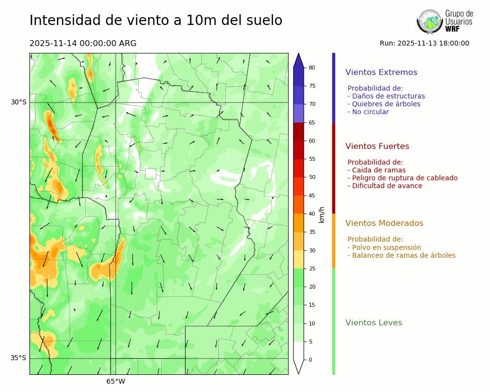 • Intensidad máxima: 13.13 km/h (14/11/2025 11hs.)