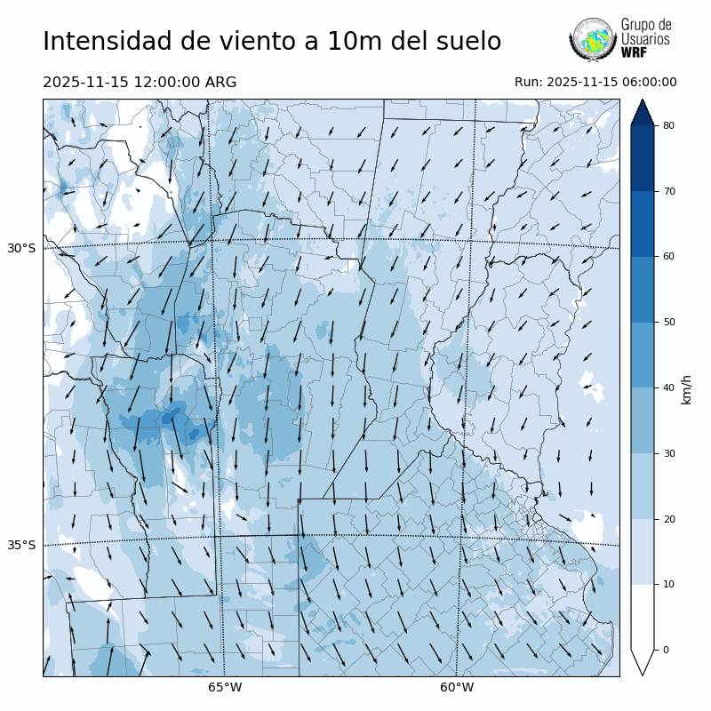 • Intensidad máxima: 21.95 km/h (15/11/2025 17hs.)