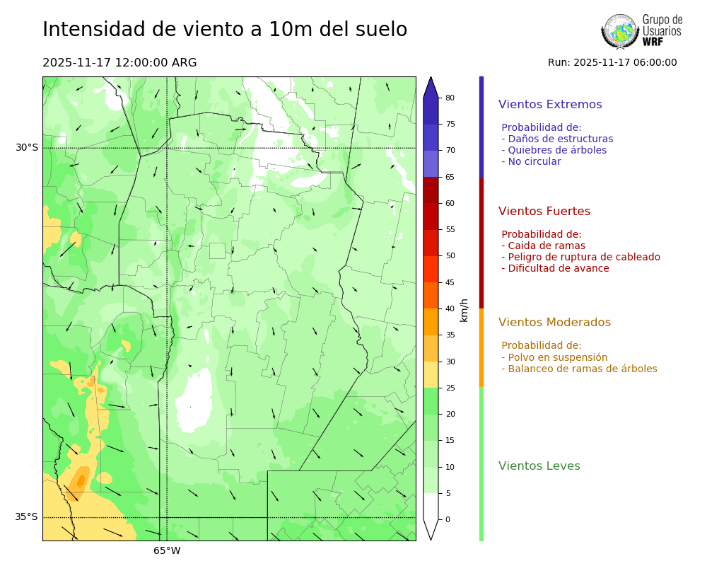 • Intensidad máxima: 15.49 km/h (17/11/2025 20hs.)