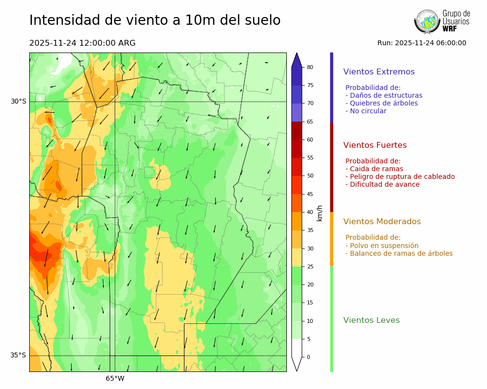 • Intensidad máxima: 20.27 km/h (24/11/2025 20hs.)