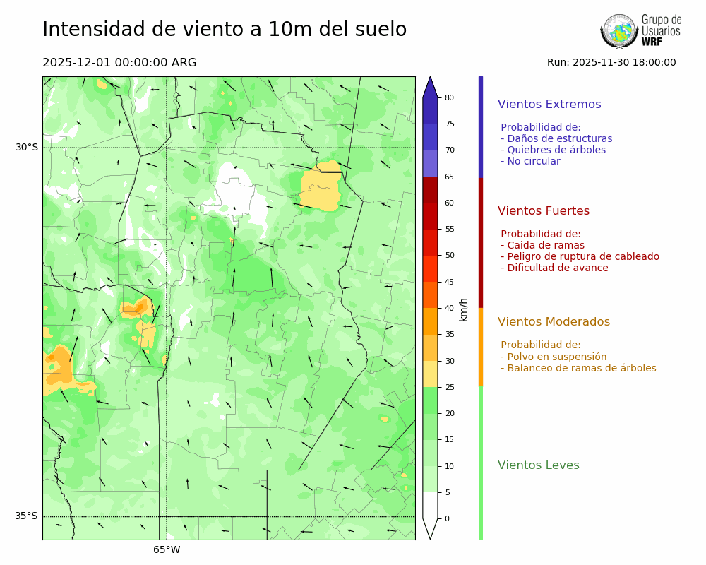 • Intensidad máxima: 16.71 km/h (01/12/2025 00hs.)
