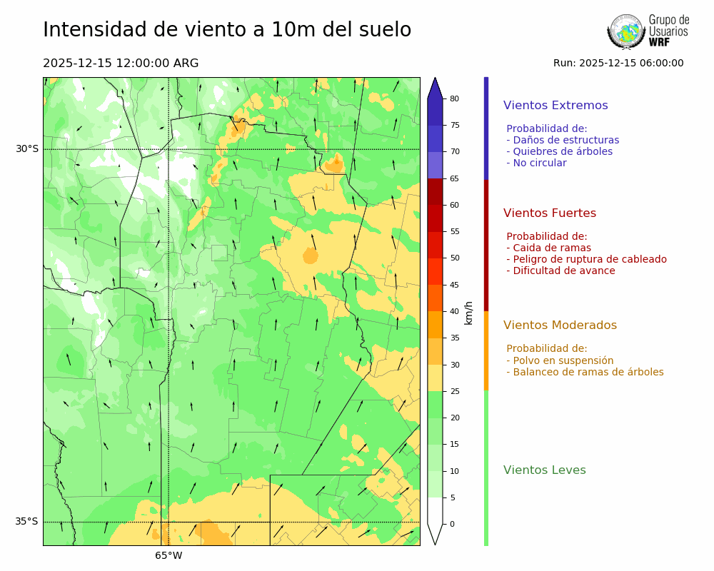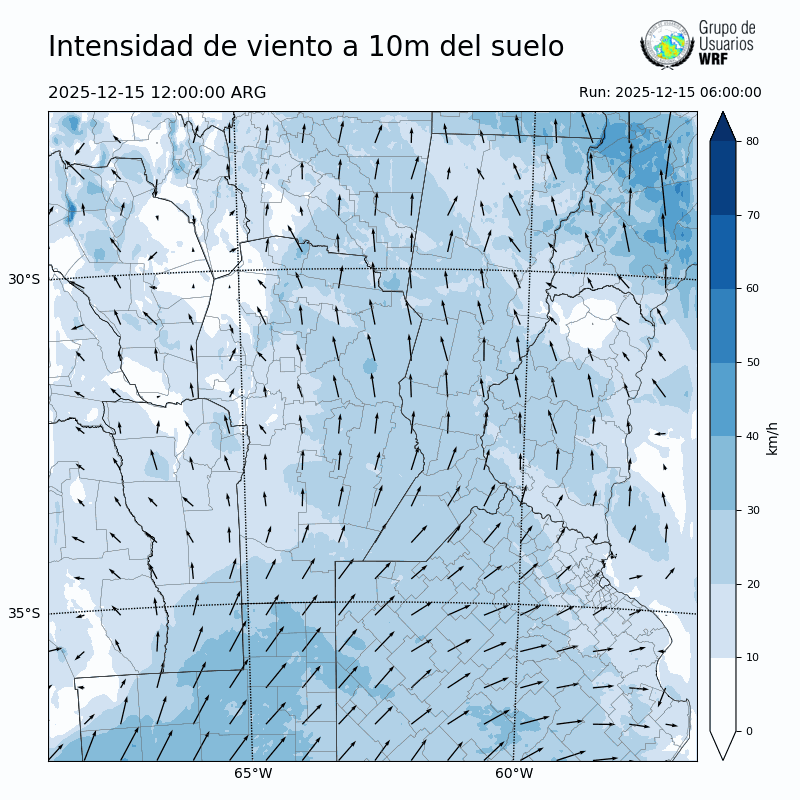 • Intensidad máxima: 12.75 km/h (15/12/2025 20hs.)