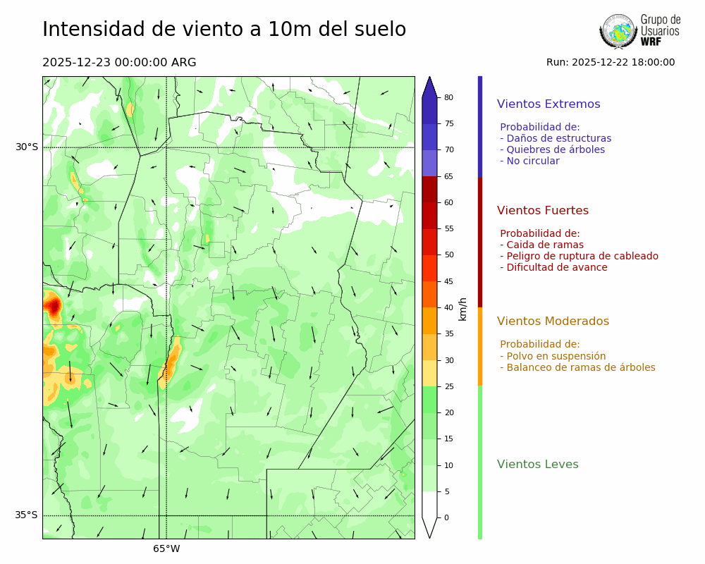 • Intensidad máxima: 13.66 km/h (23/12/2025 02hs.)