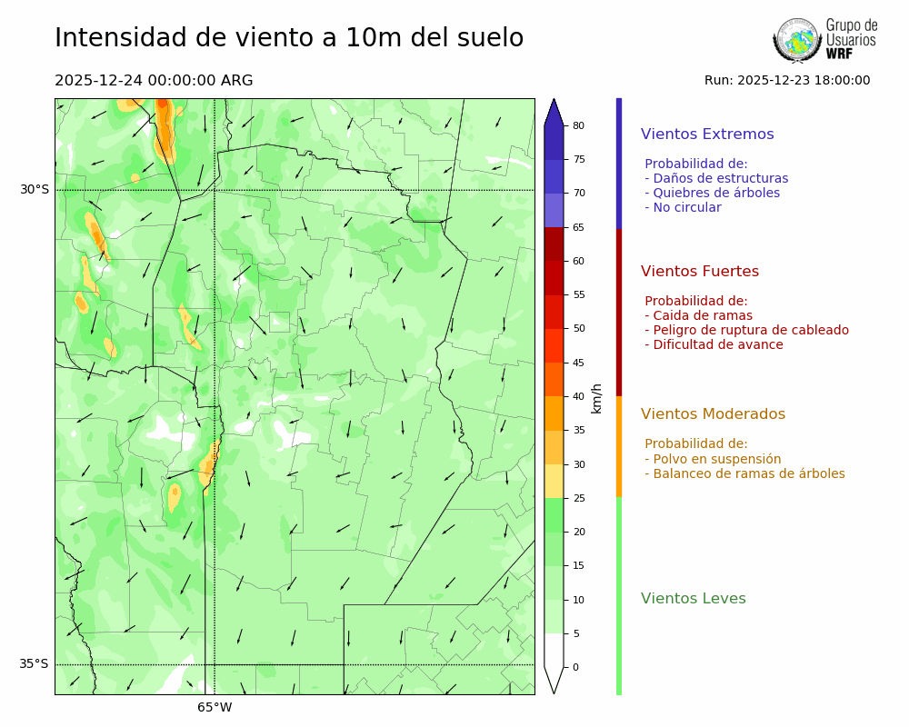 • Intensidad máxima: 12.72 km/h (24/12/2025 11hs.)