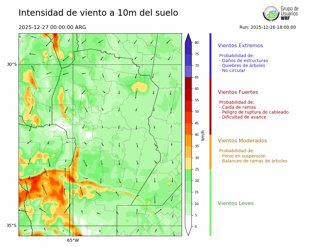 • Intensidad máxima: 23.82 km/h (27/12/2025 08hs.)