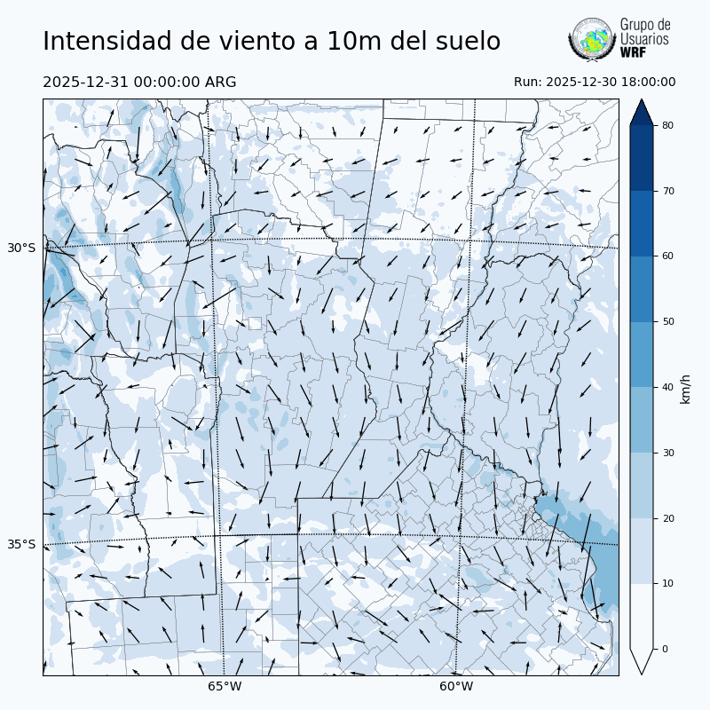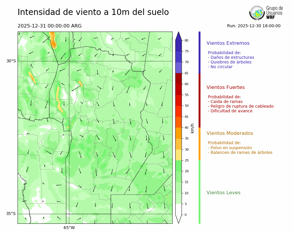 • Intensidad máxima: 6.73 km/h (31/12/2025 08hs.)
