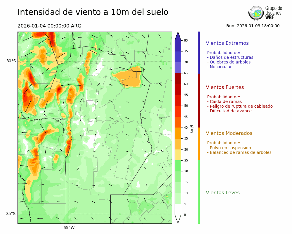 • Intensidad máxima: 5.35 km/h (04/01/2026 04hs.)
