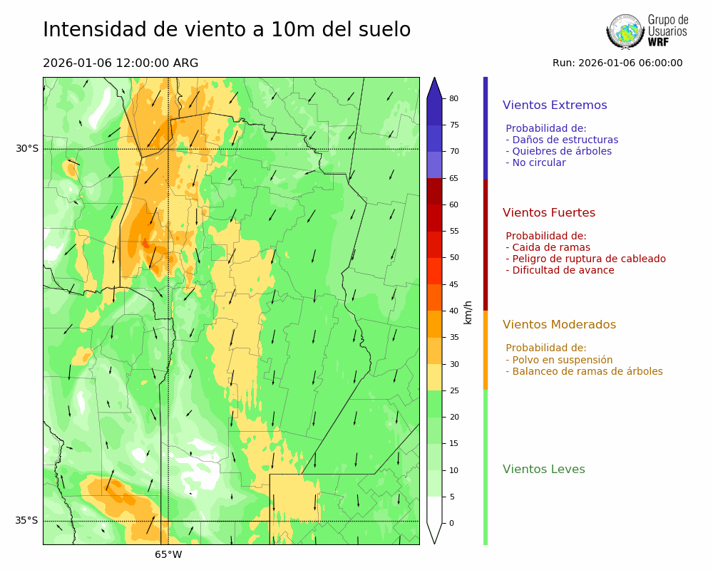 • Intensidad máxima: 20.65 km/h (06/01/2026 12hs.)