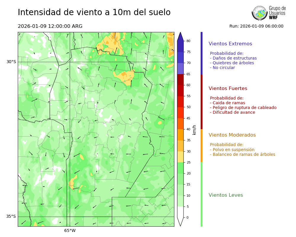• Intensidad máxima: 11.76 km/h (09/01/2026 16hs.)