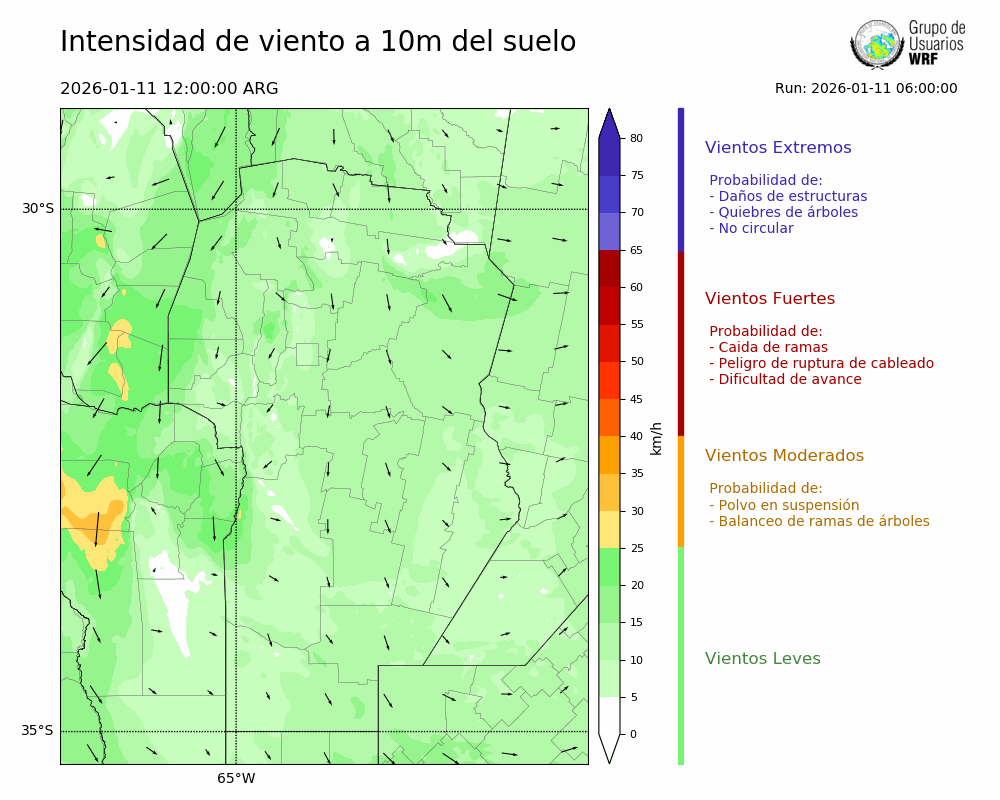 • Intensidad máxima: 3.05 km/h (12/01/2026 03hs.)