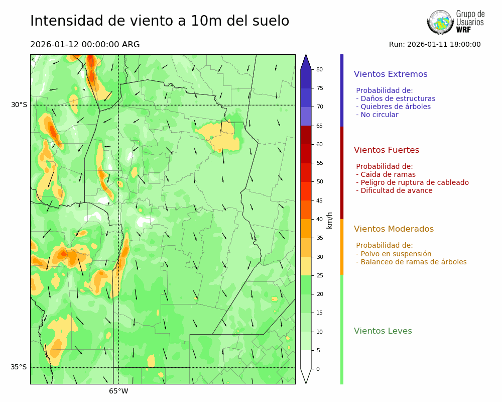 • Intensidad máxima: 6.31 km/h (12/01/2026 06hs.)
