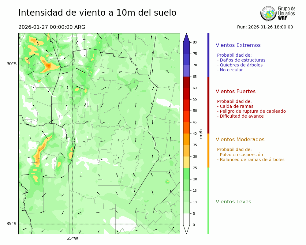 • Intensidad máxima: 6.56 km/h (28/01/2026 05hs.)