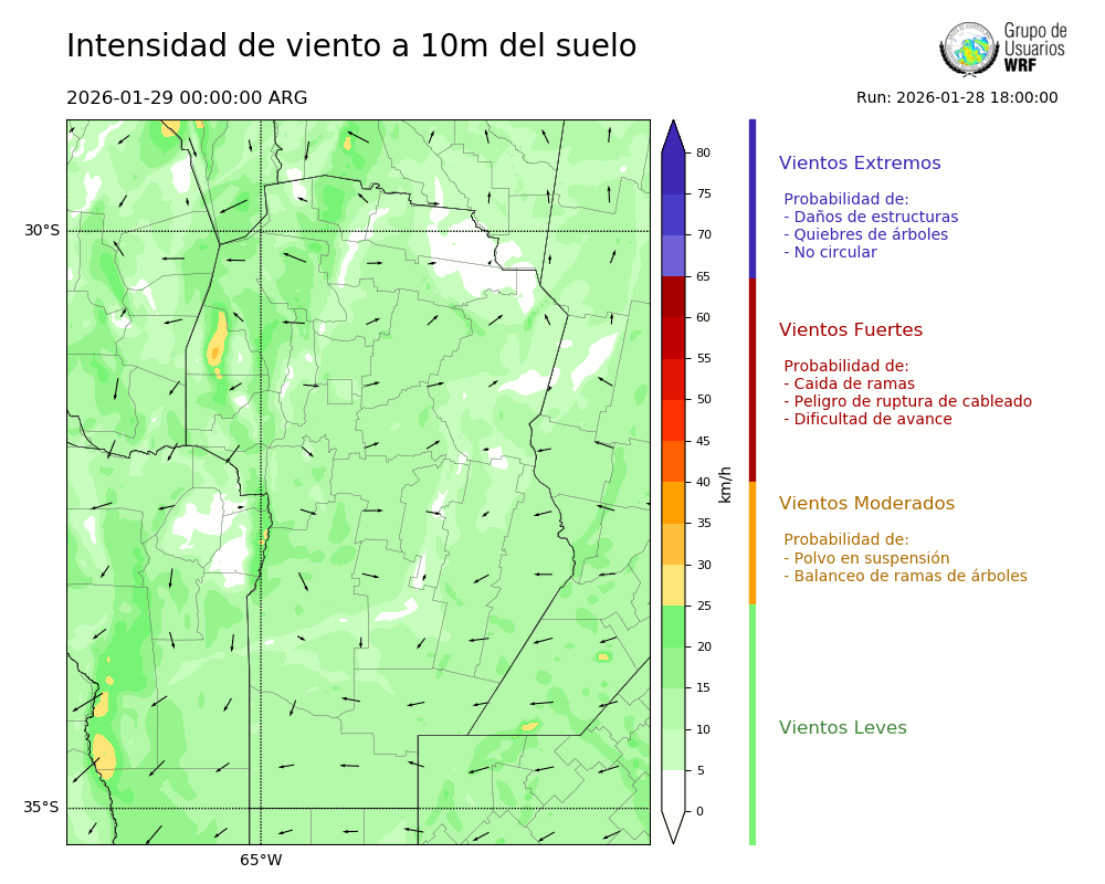 • Intensidad máxima: 8.91 km/h (29/01/2026 00hs.)