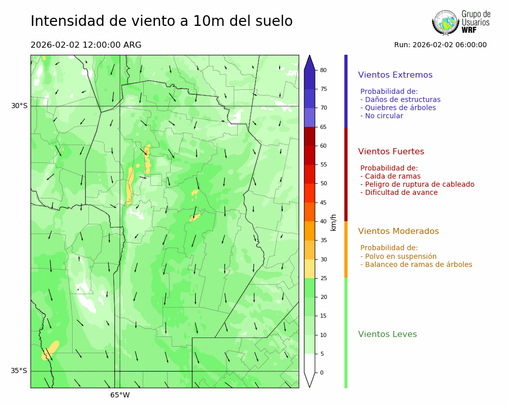 • Intensidad máxima: 12.22 km/h (04/02/2026 13hs.)