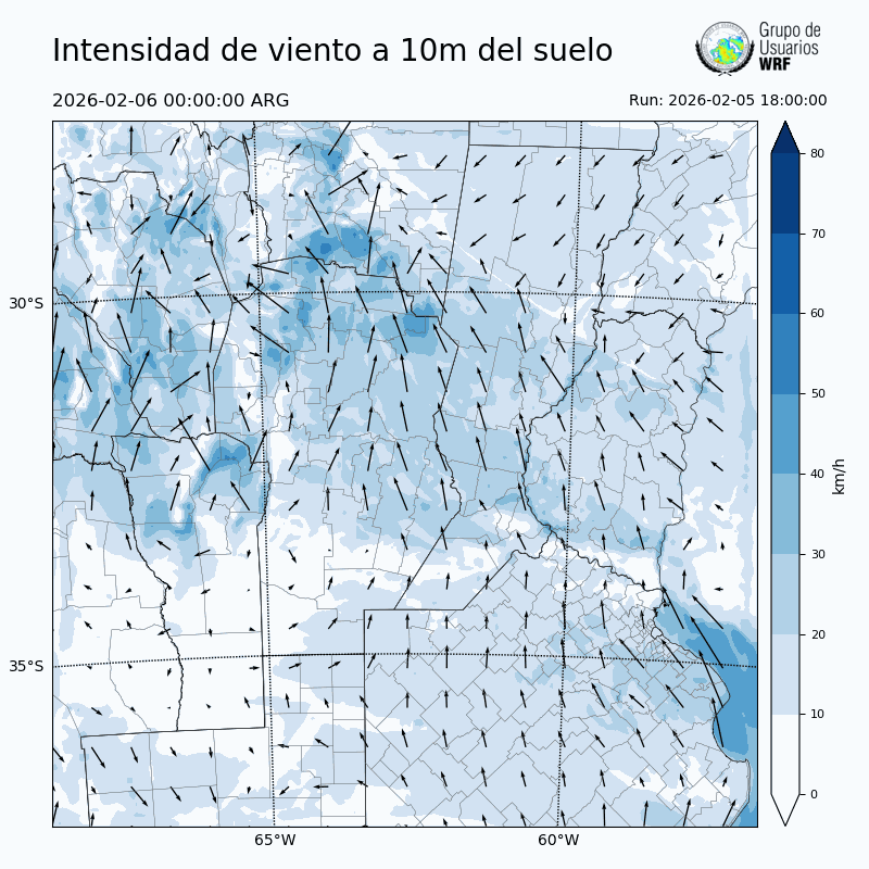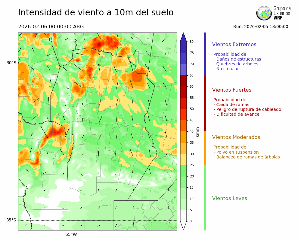 • Intensidad máxima: 20.55 km/h (06/02/2026 01hs.)