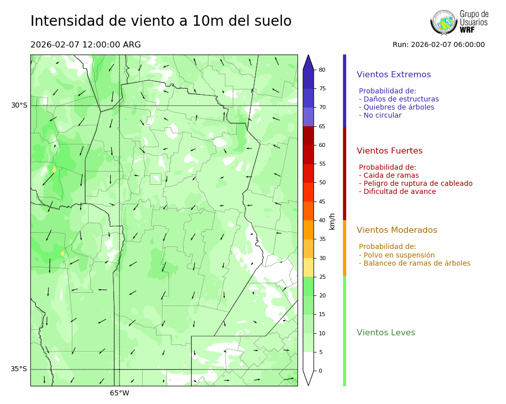 • Intensidad máxima: 18.66 km/h (07/02/2026 21hs.)
