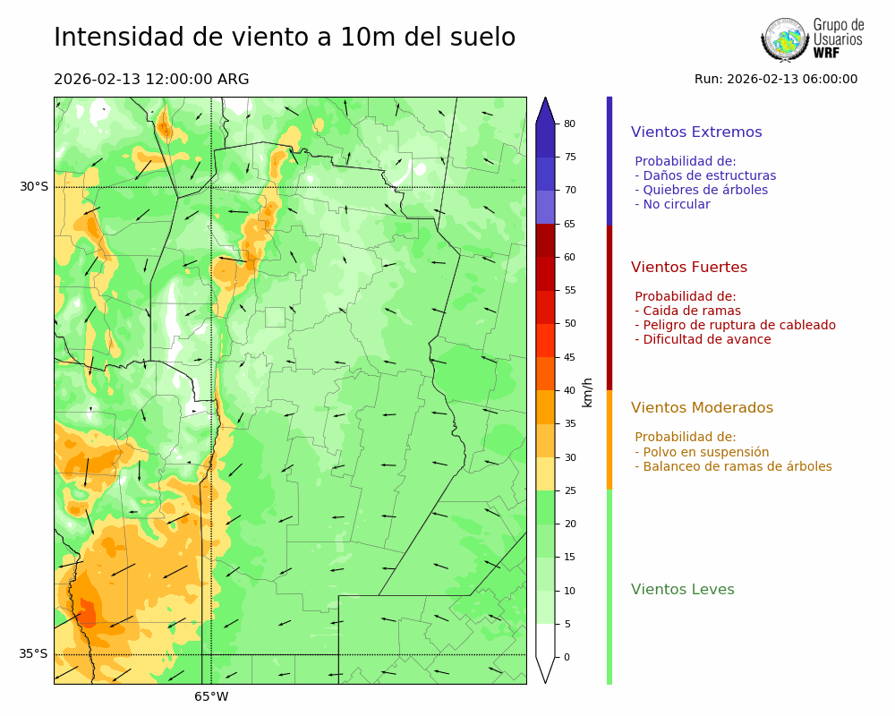 • Intensidad máxima: 8.42 km/h (14/02/2026 06hs.)