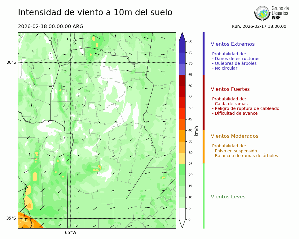• Intensidad máxima: 6.79 km/h (18/02/2026 01hs.)