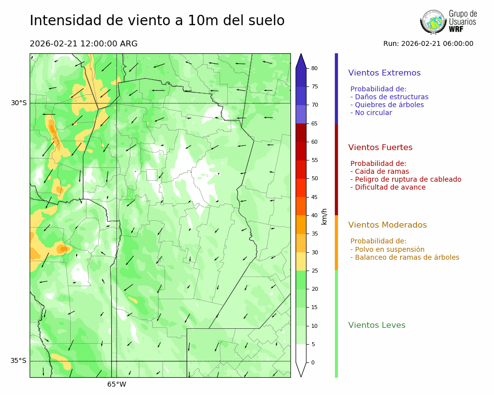 • Intensidad máxima: 14.45 km/h (21/02/2026 20hs.)