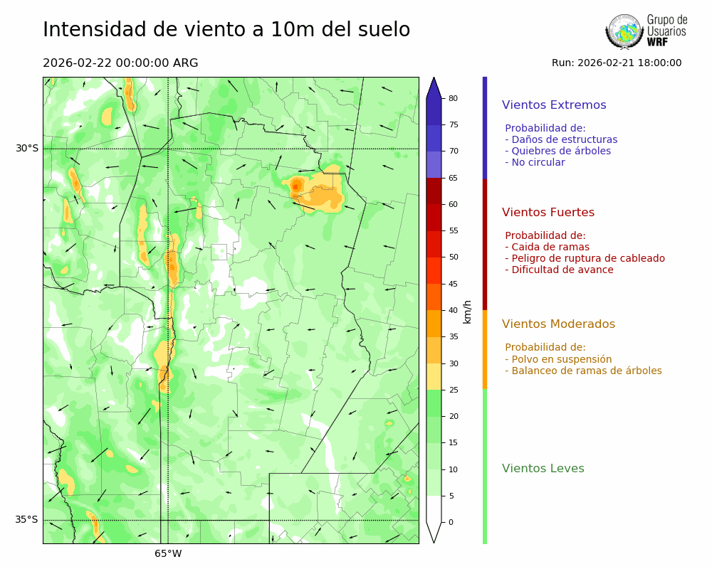 • Intensidad máxima: 7.16 km/h (22/02/2026 04hs.)