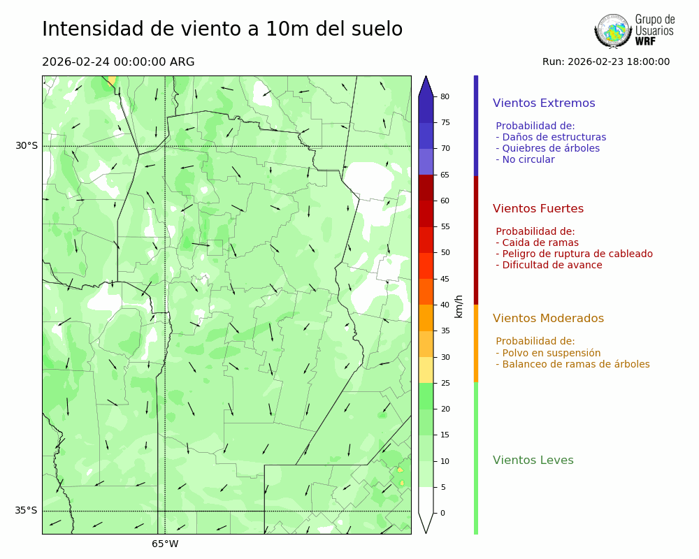 • Intensidad máxima: 15.70 km/h (24/02/2026 07hs.)