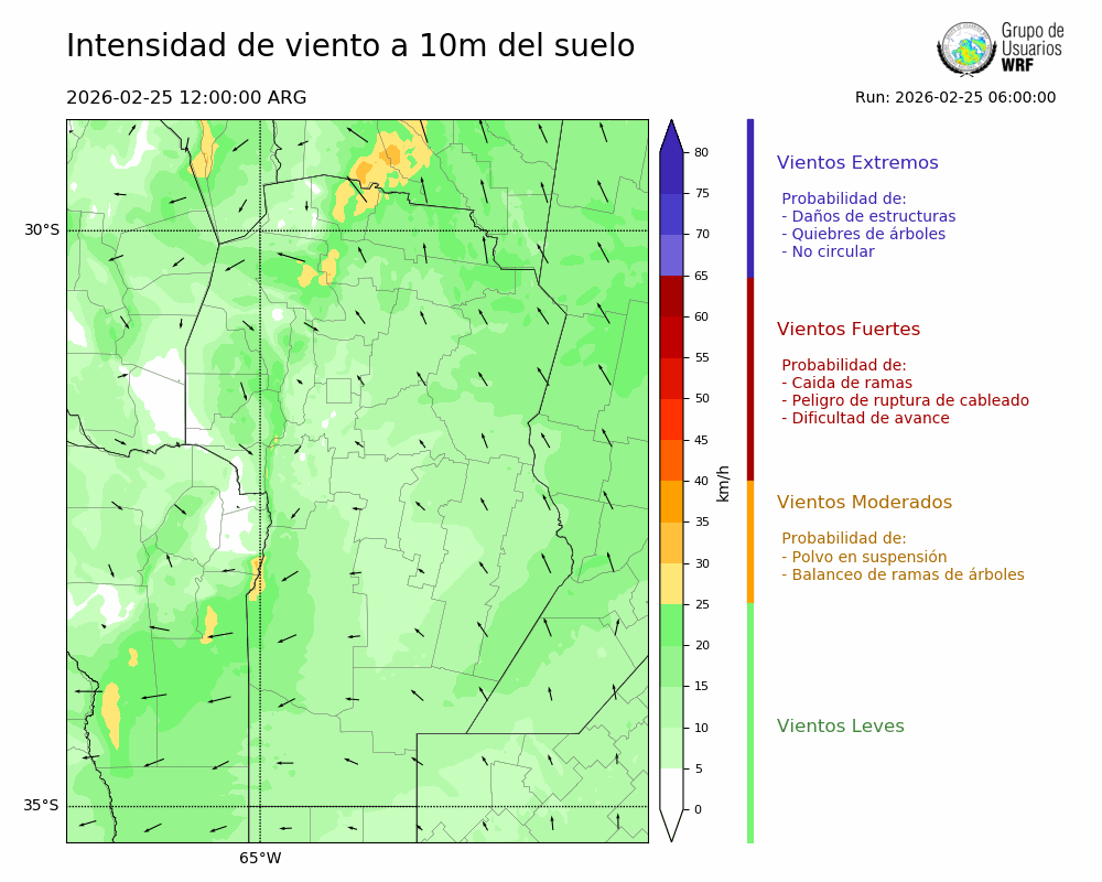 • Intensidad máxima: 13.51 km/h (25/02/2026 20hs.)