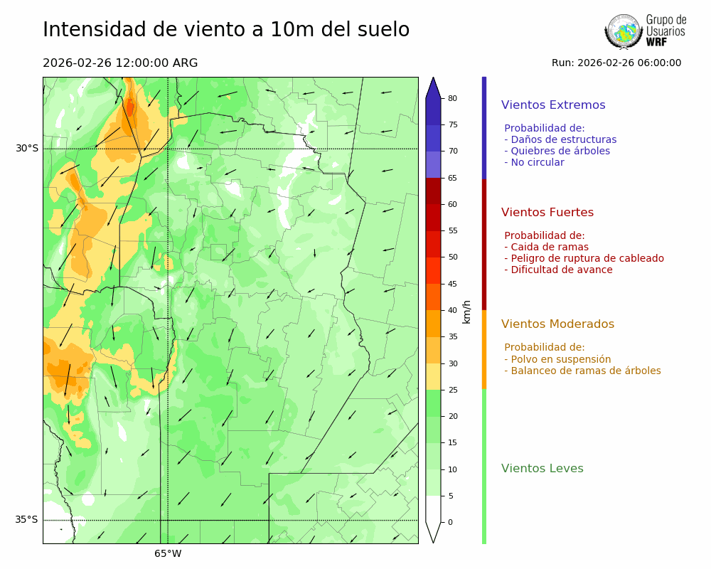 • Intensidad máxima: 18.72 km/h (26/02/2026 19hs.)