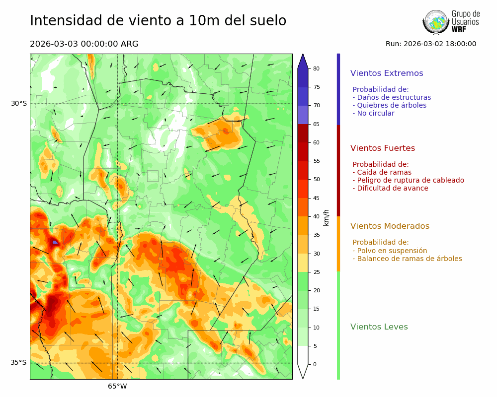 • Intensidad máxima: 15.44 km/h (05/03/2026 06hs.)