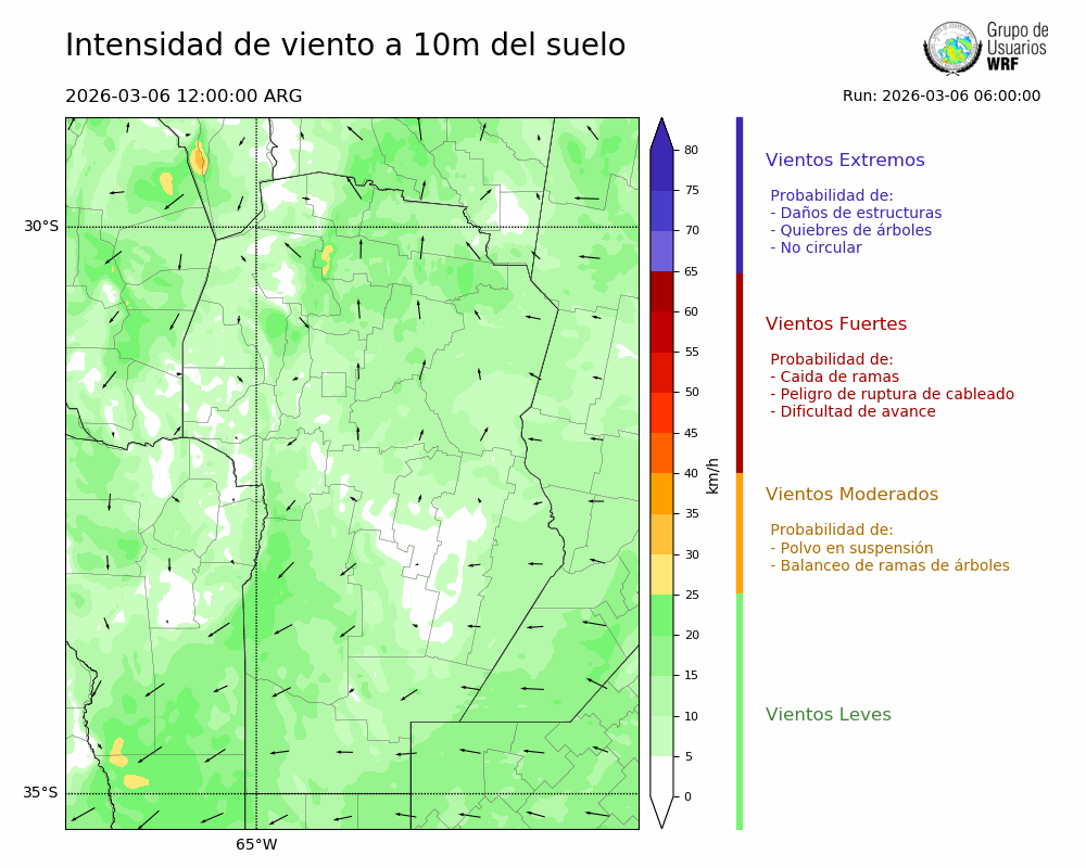• Intensidad máxima: 9.78 km/h (06/03/2026 20hs.)