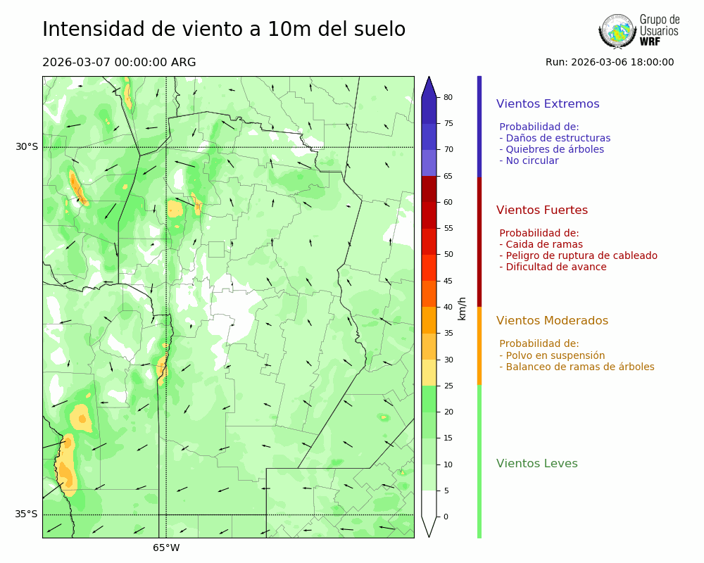 • Intensidad máxima: 8.51 km/h (07/03/2026 00hs.)