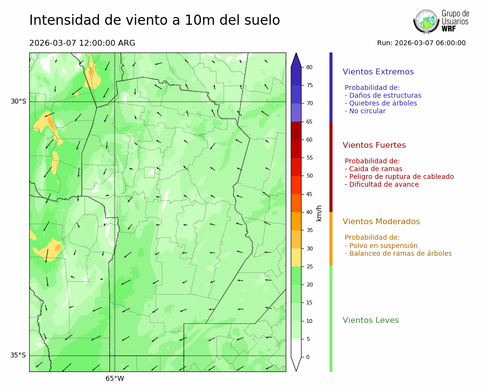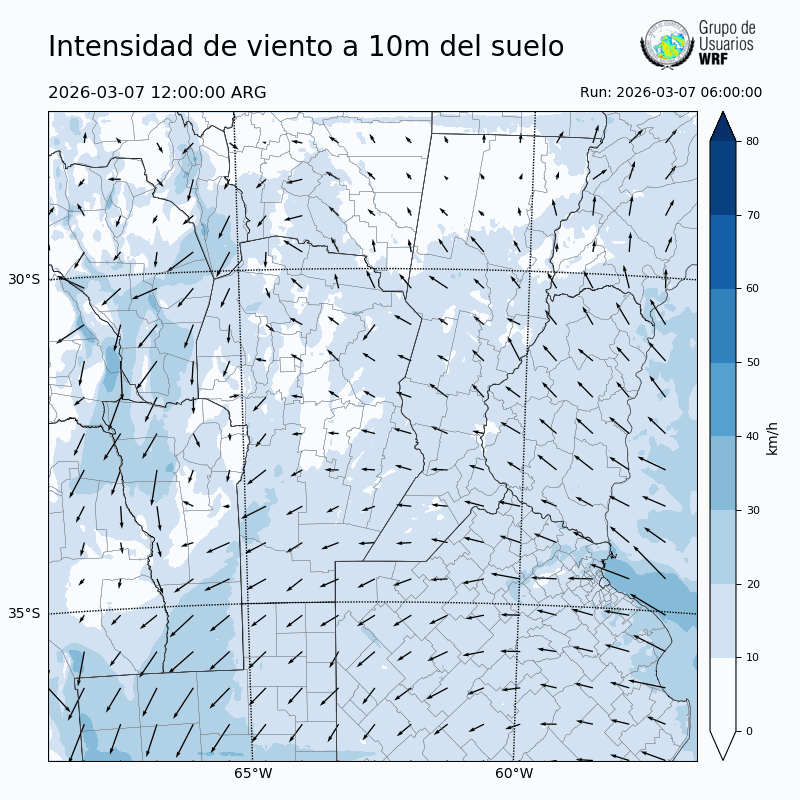 • Intensidad máxima: 6.04 km/h (08/03/2026 00hs.)