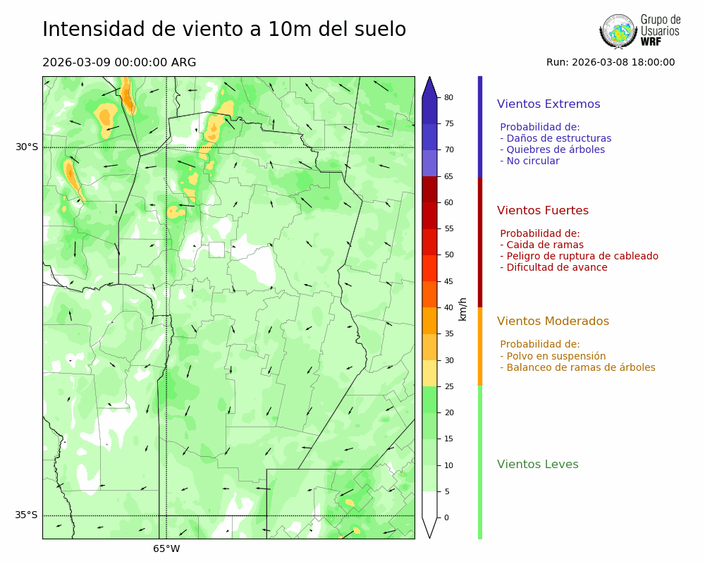 • Intensidad máxima: 2.04 km/h (09/03/2026 07hs.)