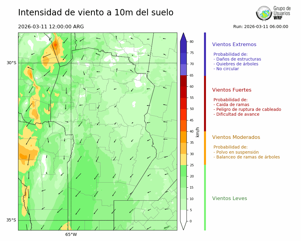 • Intensidad máxima: 7.59 km/h (13/03/2026 08hs.)