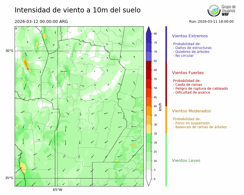 • Intensidad máxima: 8.56 km/h (12/03/2026 11hs.)