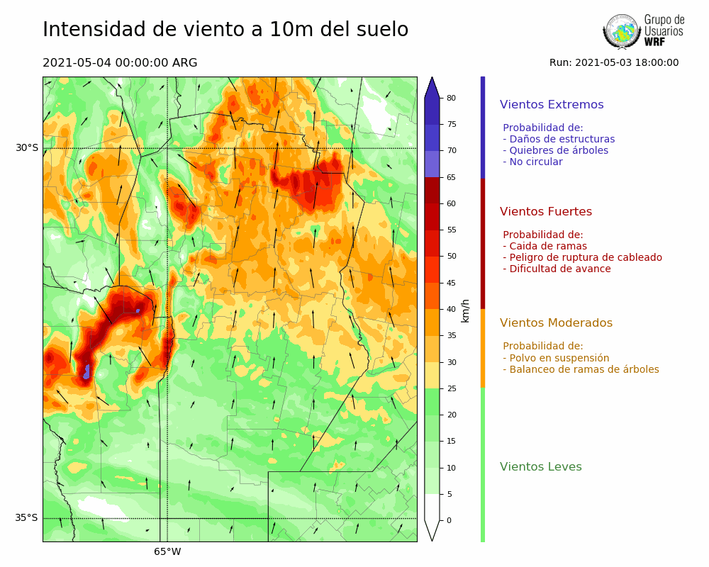 • Intensidad máxima: 31.18 km/h (04/05/2021 03hs.)