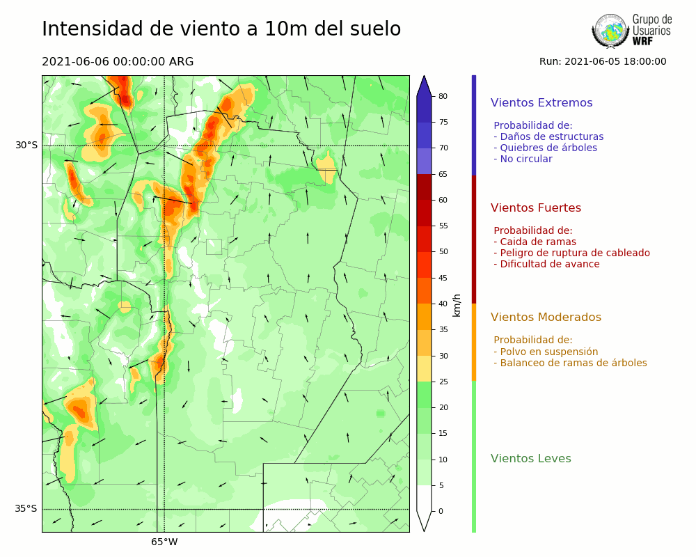 • Intensidad máxima: 5.57 km/h (06/06/2021 00hs.)