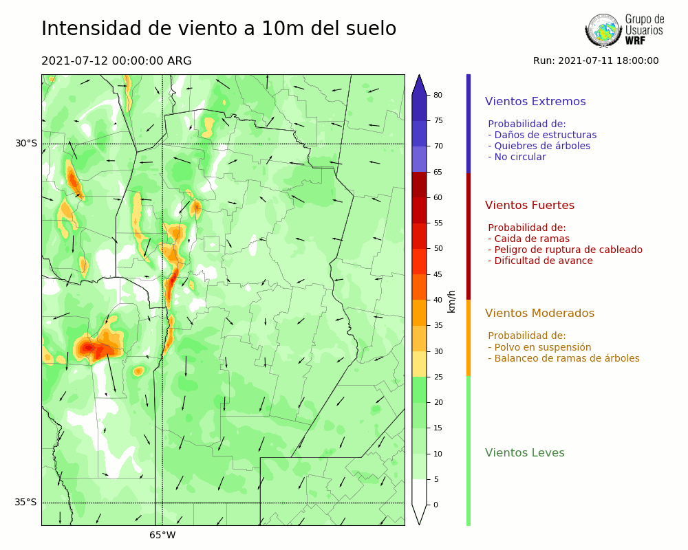 • Intensidad máxima: 12.80 km/h (13/07/2021 05hs.)