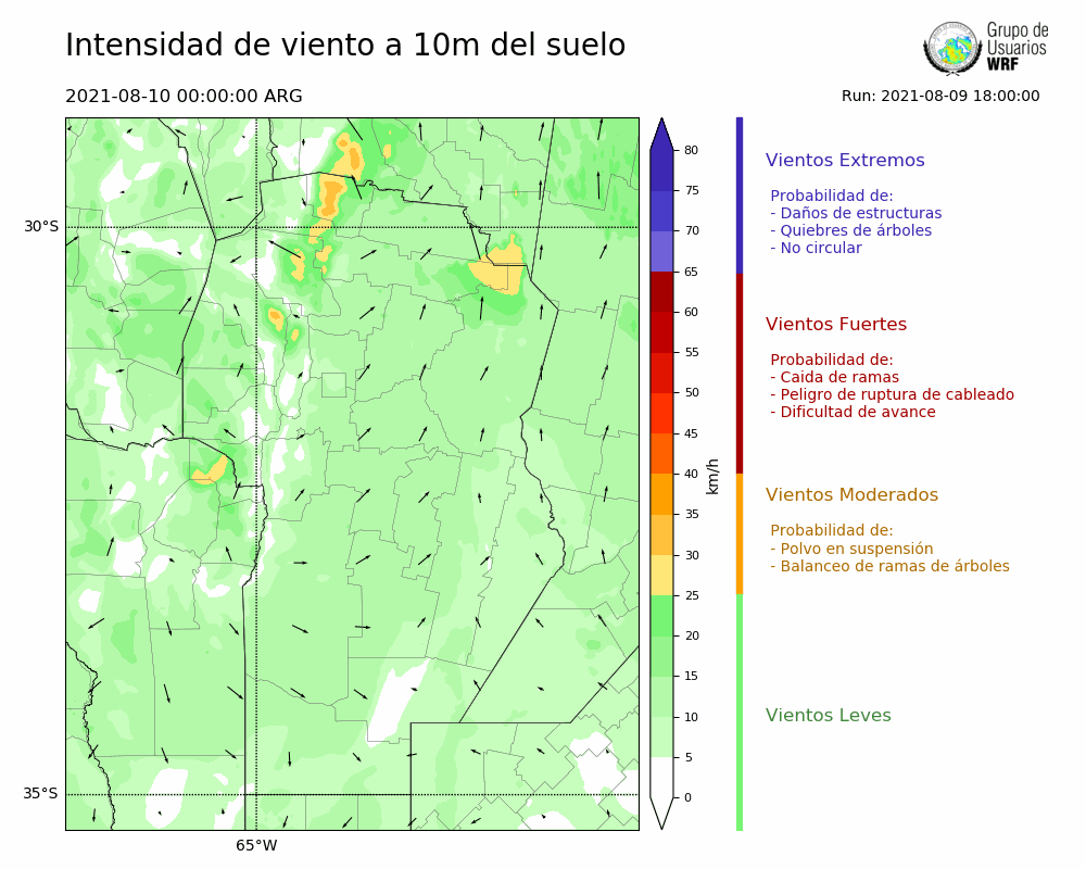 • Intensidad máxima: 12.95 km/h (11/08/2021 04hs.)