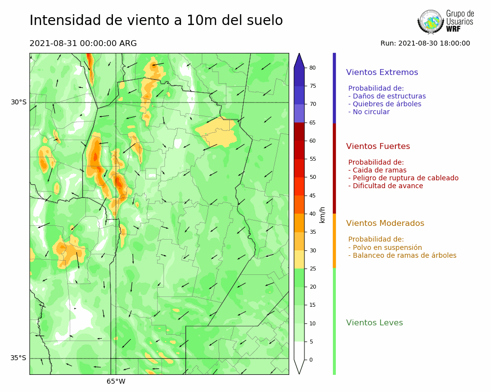 • Intensidad máxima: 35.07 km/h (31/08/2021 14hs.)