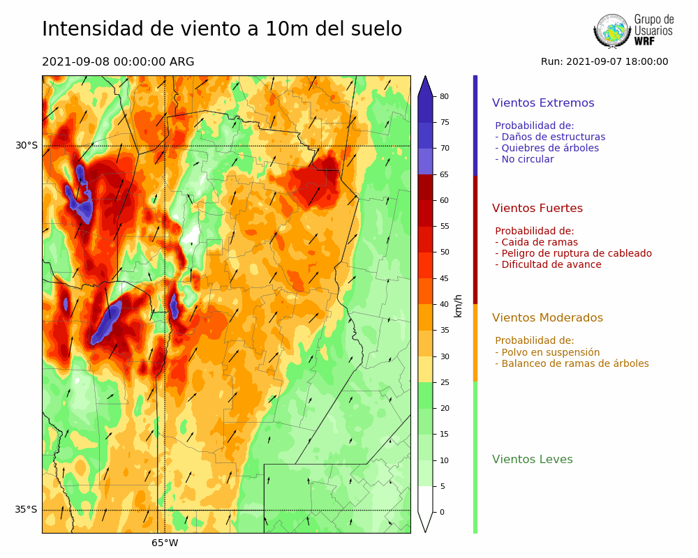 • Intensidad máxima: 17.83 km/h (08/09/2021 02hs.)